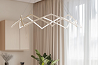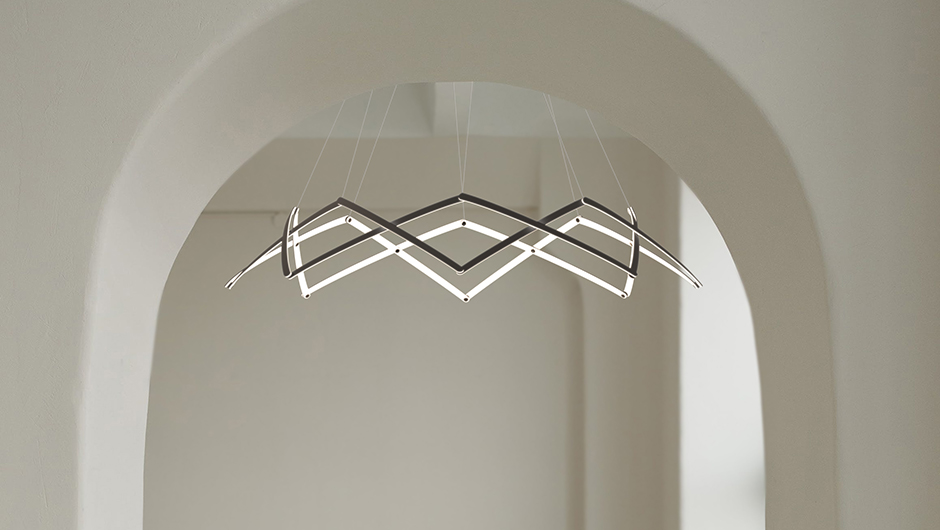 Stella is a dynamic pendant light that can be effortlessly expanded to a wide range of sizes from 10”(25.4 cm) to 59” (150cm) in diameter depending on user needs. Made up of multiple interwoven aluminum arm segments with strategically placed pivot joints, this dynamic fixture transforms from inward facing illumination to downward facing direct lighting when expanded outward.