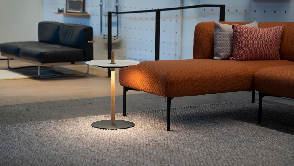 At the intersection of functional lighting and furniture, you find Nivél. As an adjustable height side table, Nivél provides a totem to gather around. Portable and rechargeable, Nivél enables users to bring light to areas not serviced by power outlets. Sturdy enough to rest a few beverages atop while nimble enough to be raised or lowered at a moment's notice. Its cleverly designed light module rests securely fastened around a solid wood post secured to a powder-coated steel base for added footing. A soft ambient downward facing light panel completes the package, bringing an unobtrusive light source to your home or office space. The post is offered in both solid Oak and Walnut and can be paired with a powder-coated tray in White, Terracotta, or Black. Explore the rest of the Nivél Collection with