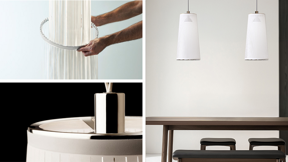 In creating Solis, designer Carmine Deganello set out to engage with light in its archetypal form: the sun’s rays. The resulting piece is an engaging blend of light and shadows, casting shimmering rays and radiating patterns onto a space. The effect is a sense of weightlessness — and a redefined environment that invites a new kind of relationship with the light source. A suspension lamp made of lightweight polyester fabric and stainless steel, Solis can be used as a pendant, hung from a wall, or as a freestanding, portable luminaire.