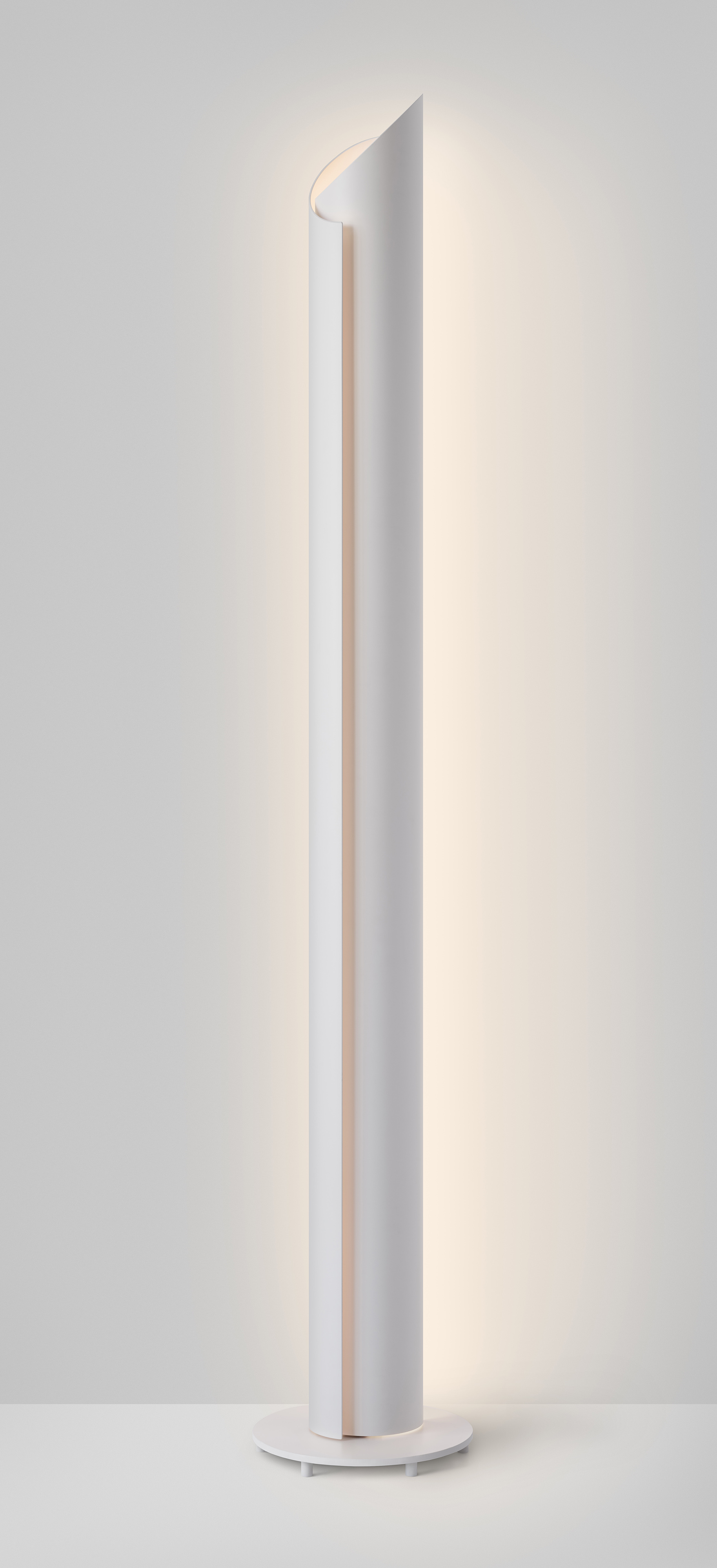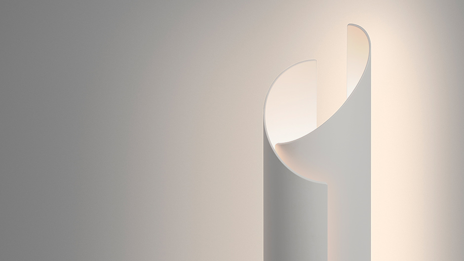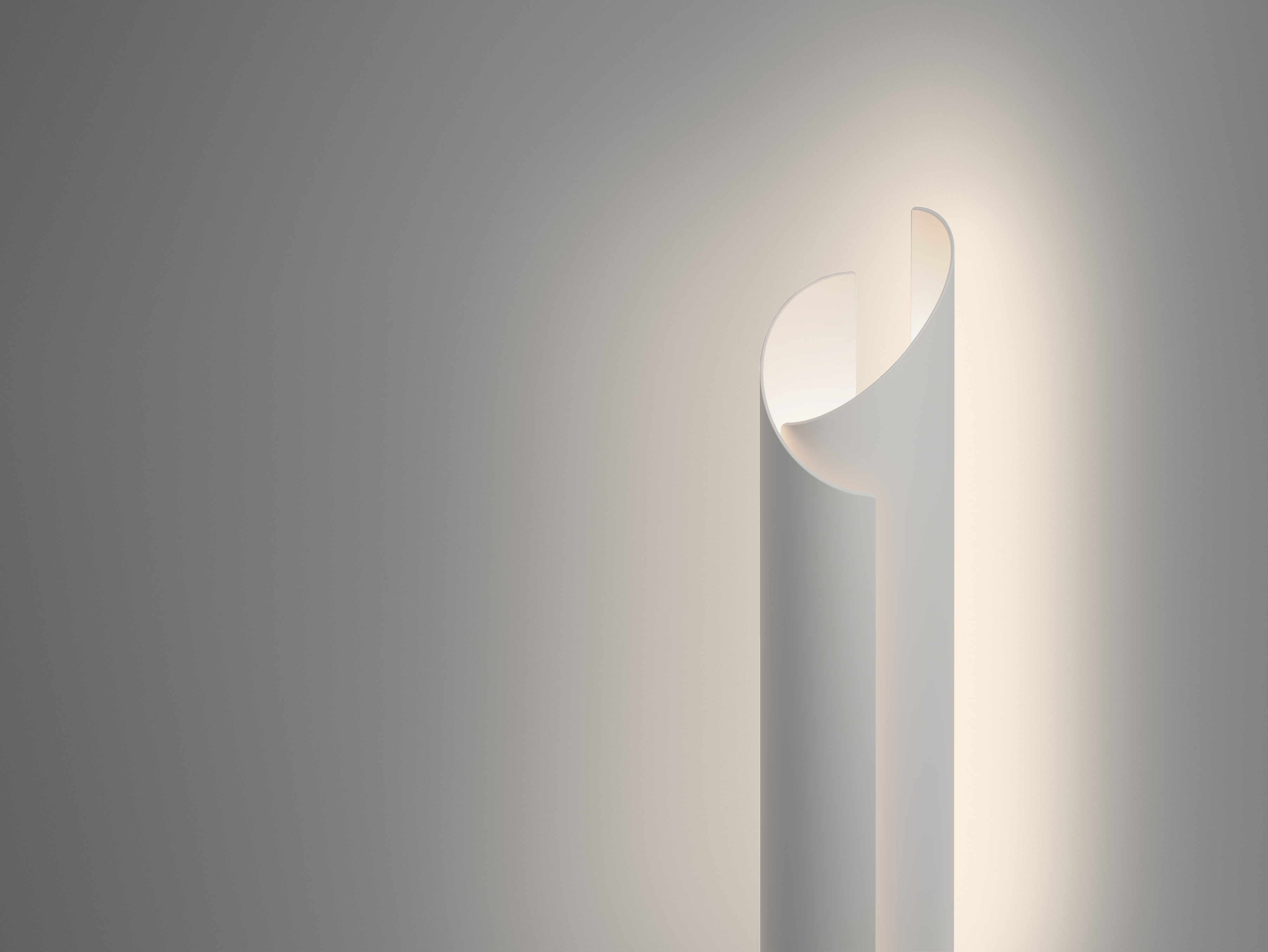 Kinetic SculptureVella's sweeping aluminum body rises gracefully to two curving points, reflecting and directing a smooth illumination of warm LED light.