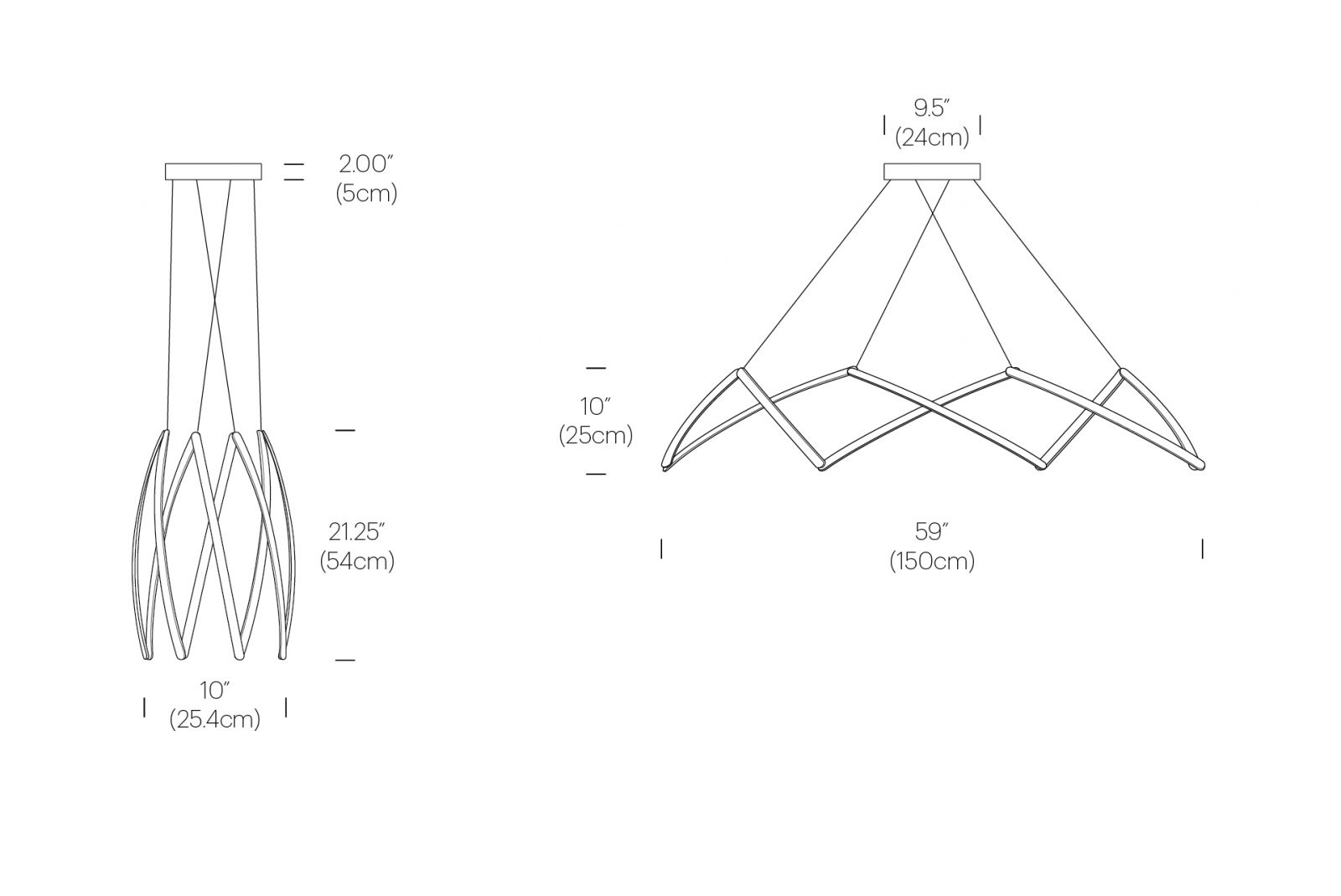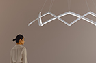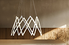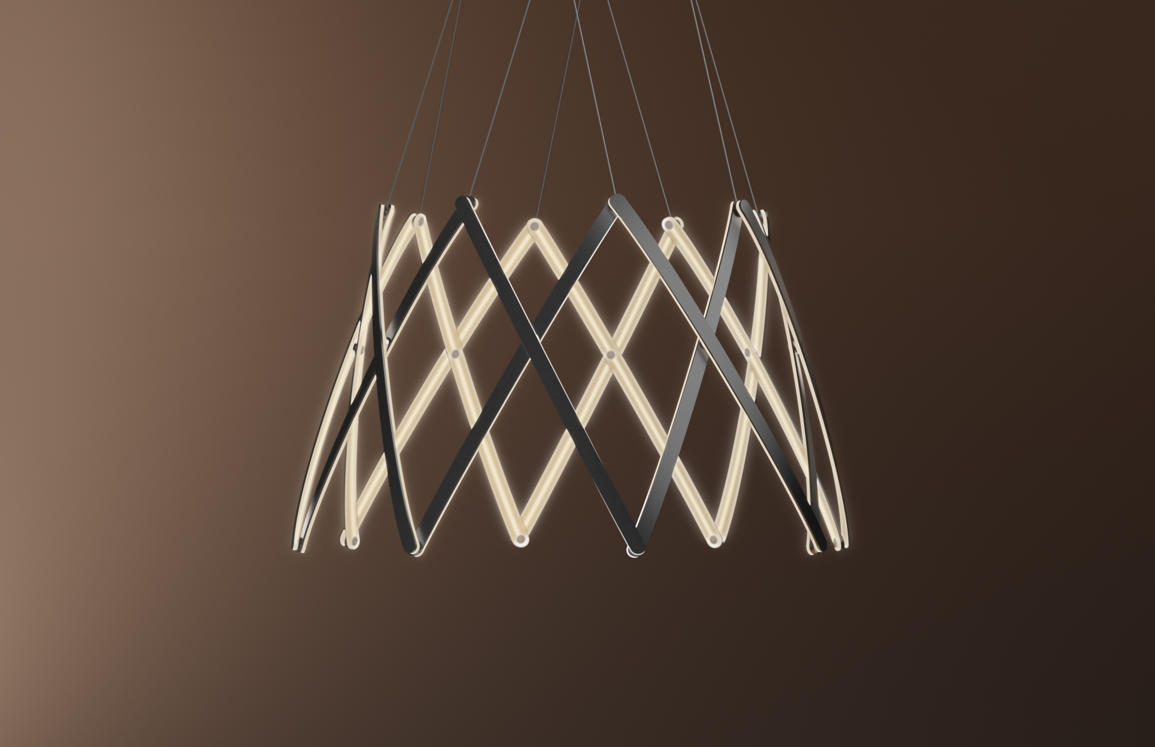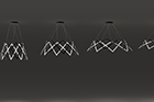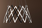 Stella is a dynamic pendant light that can be effortlessly expanded to a wide range of sizes from 10”(25.4 cm) to 59” (150cm) in diameter depending on user needs. Made up of multiple interwoven aluminum arm segments with strategically placed pivot joints, this dynamic fixture transforms from inward facing illumination to downward facing direct lighting when expanded outward.